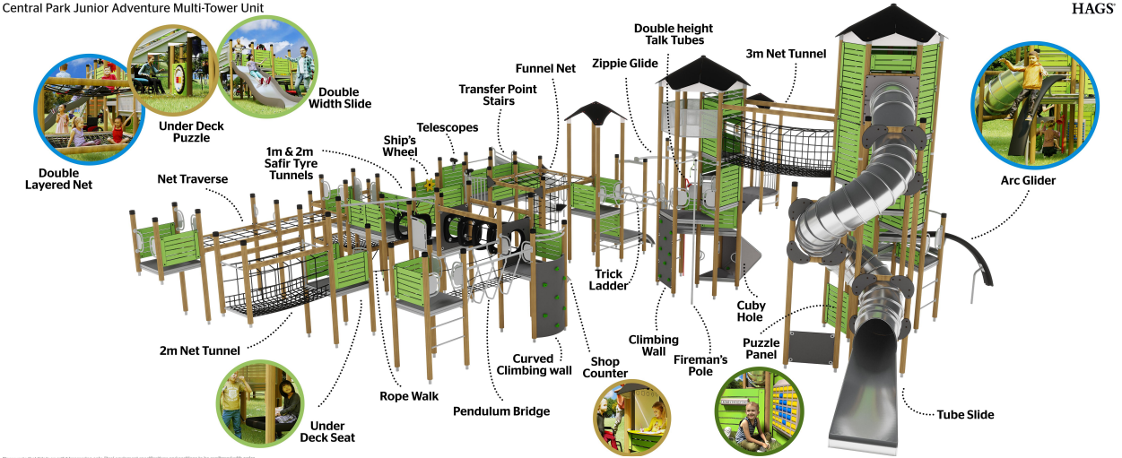 • new park facilities comprising a toddler playground, an adventure playground zone, an ‘events amphitheatre; and