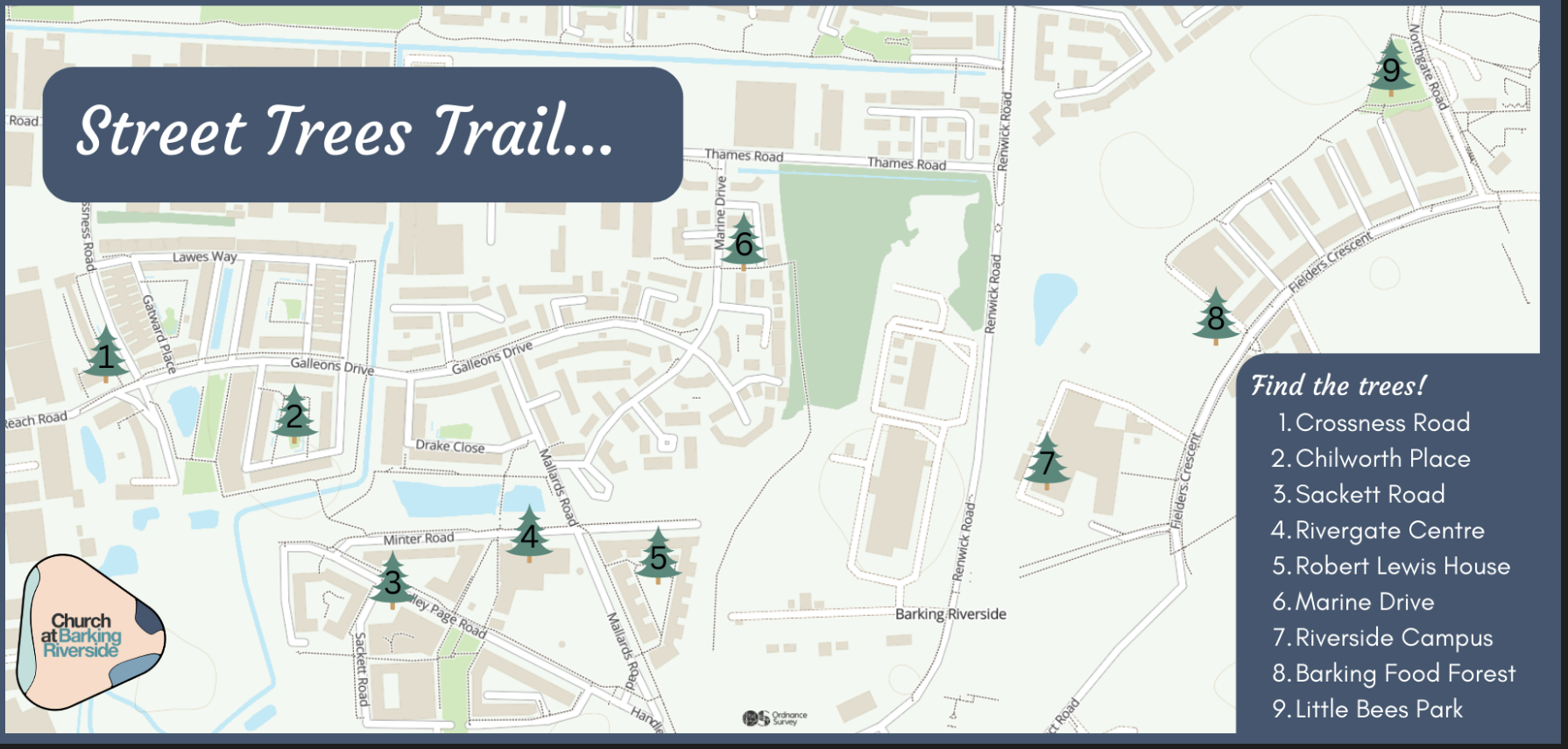 Below is a map of all the Trees Church at Riverside have dotted around Barking Riverside. The Tree will be up from around the 4th December.