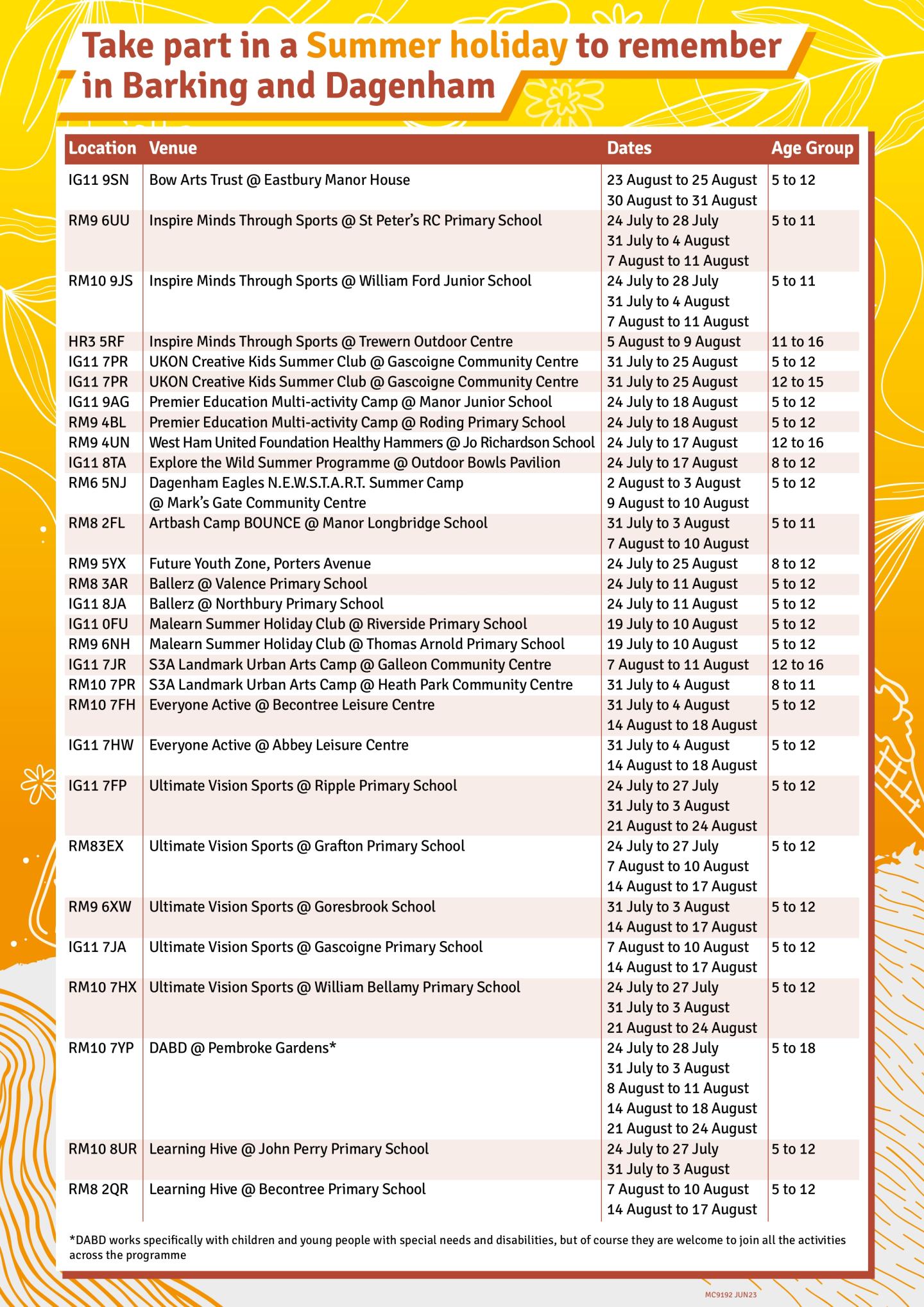 Barking and Dagenham Holiday Activity and Food programme (5-16 years olds)