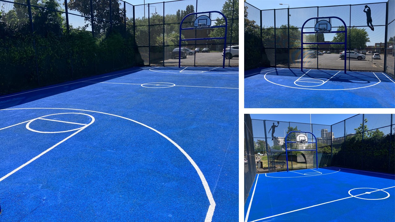 Results - Bright, Blue, Brand new Basketball court on Harts Lane Estate