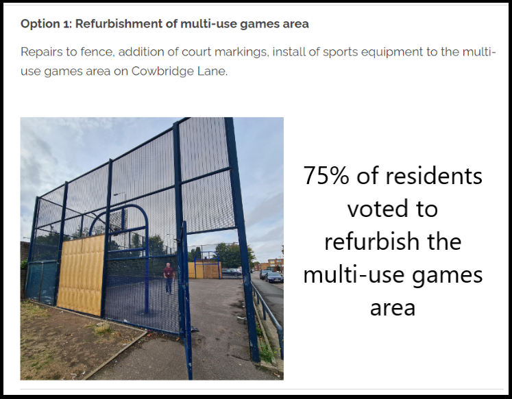 - The £100,000 funding available is part of the council’s housing land and estates maintenance budget, and therefore can only be spent on projects which are on council housing land.